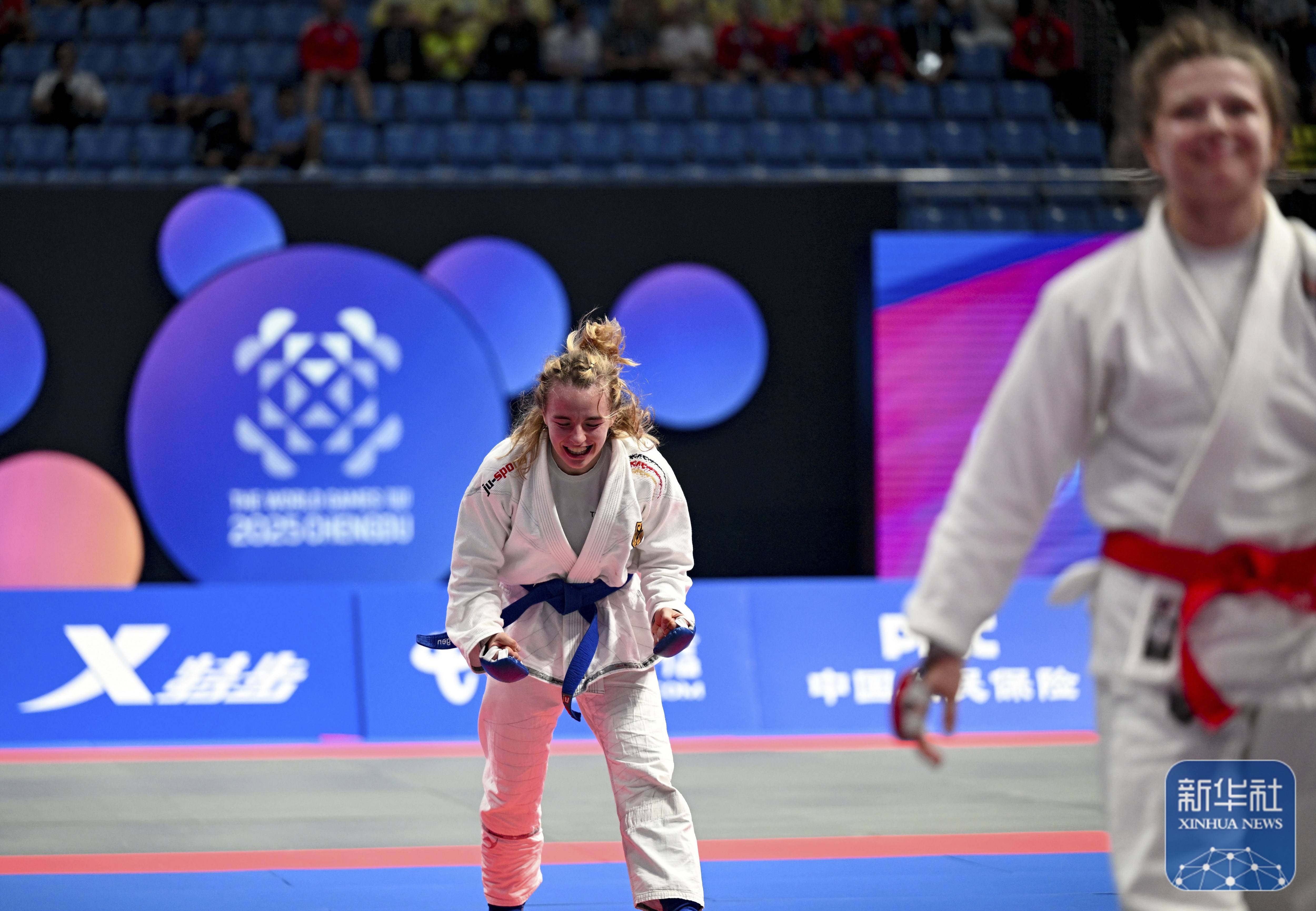 8月11日,在2025年成都世运会柔术女子搏击57公斤级金牌赛中,德国选手布舍尔战胜丹麦选手达尔,夺得冠军。